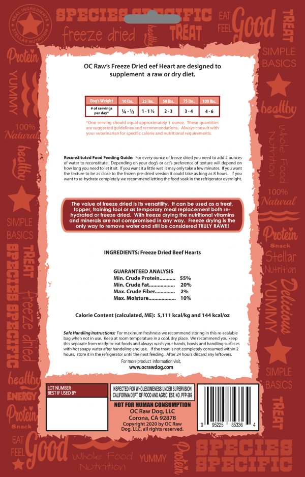 OC Raw FD Beef HEARTS ~ 4 OZ FREEZE DRIED